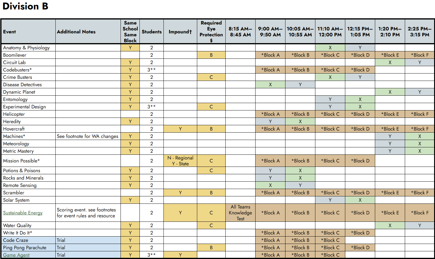 Correction - It's only for "code busters" if X schedule - Block A, if Y schedule - Block B for all Odle MS teams.